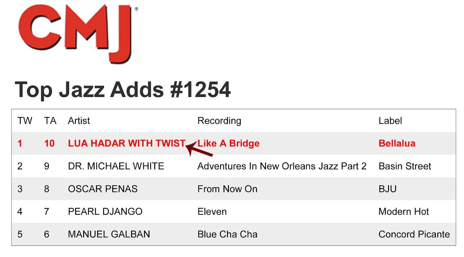 In the first week that the Like A Bridge CD was released to radio stations around the country it made #1 on the Top Jazz Ad Charts, and is receiving airplay from Maine to Alaska.